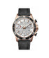 ساعه جروفانا السويسريه رجالي إطار معدني ذهبي مينا فضي كرونوقراف زجاج كرستال ياقوتي ضد الماء 10ATM بطاريه مؤشر التاريخ حزام جلد اسود.